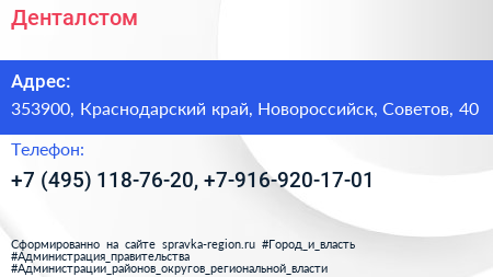 Денталстом по адресу 353900, Краснодарский край, Новороссийск, Советов, 40 в дальнейшем Организация, размещена в следующих категориях: