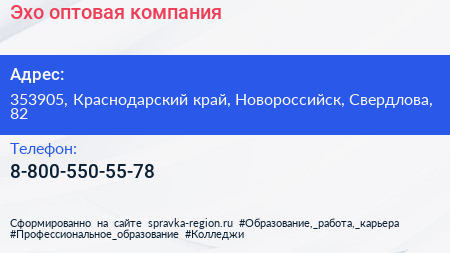 Эхо, оптовая компания по адресу 353905, Краснодарский край, Новороссийск, Свердлова, 82 в дальнейшем Организация, размещена в следующих категориях: