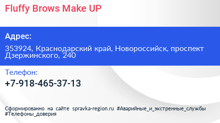 Fluffy Brows & Make UP по адресу 353924, Краснодарский край, Новороссийск, проспект Дзержинского, 240 в дальнейшем Организация, размещена в следующих категориях: