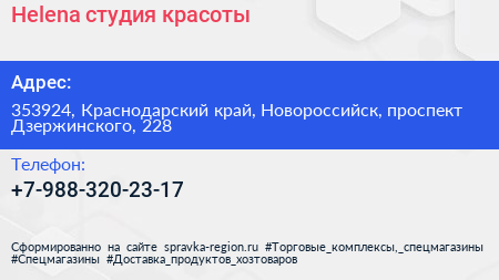 Helena, студия красоты по адресу 353924, Краснодарский край, Новороссийск, проспект Дзержинского, 228 в дальнейшем Организация, размещена в следующих категориях: