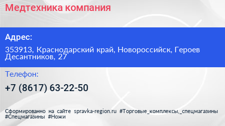 Медтехника, компания по адресу 353913, Краснодарский край, Новороссийск, Героев Десантников, 27 в дальнейшем Организация, размещена в следующих категориях: