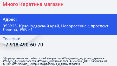 Много Кератина, магазин по адресу 353925, Краснодарский край, Новороссийск, проспект Ленина, 95Б к1 в дальнейшем Организация, размещена в следующих категориях: