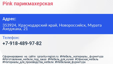 Pink, парикмахерская по адресу 353924, Краснодарский край, Новороссийск, Мурата Ахеджака, 21 в дальнейшем Организация, размещена в следующих категориях: