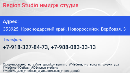 Region Studio, имидж-студия по адресу 353925, Краснодарский край, Новороссийск, Вербовая, 3 в дальнейшем Организация, размещена в следующих категориях: