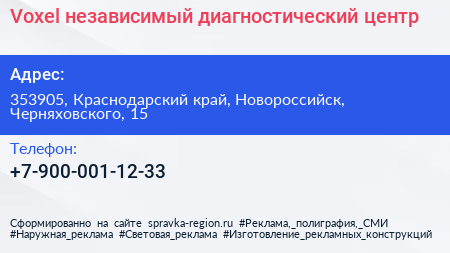 Voxel, независимый диагностический центр по адресу 353905, Краснодарский край, Новороссийск, Черняховского, 15 в дальнейшем Организация, размещена в следующих категориях: