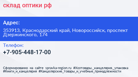 склад-оптики.рф по адресу 353913, Краснодарский край, Новороссийск, проспект Дзержинского, 174 в дальнейшем Организация, размещена в следующих категориях: