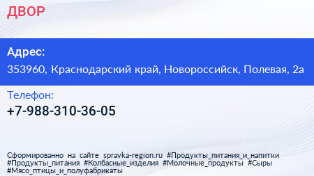ДВОР по адресу 353960, Краснодарский край, Новороссийск, Полевая, 2а в дальнейшем Организация, размещена в следующих категориях: