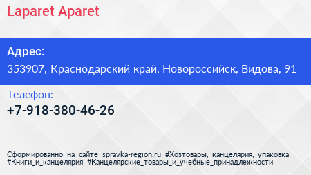 Laparet Aparet по адресу 353907, Краснодарский край, Новороссийск, Видова, 91 в дальнейшем Организация, размещена в следующих категориях: