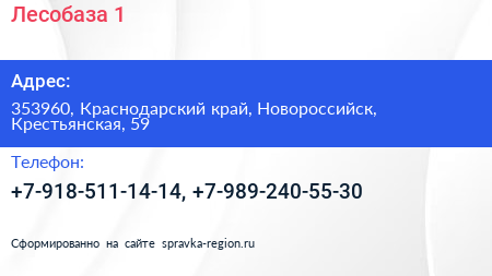 Лесобаза №1 по адресу 353960, Краснодарский край, Новороссийск, Крестьянская, 59 в дальнейшем Организация, размещена в следующих категориях: