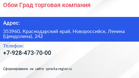 Обои Град, торговая компания по адресу 353960, Краснодарский край, Новороссийск, Ленина (Цемдолина), 242 в дальнейшем Организация, размещена в следующих категориях: