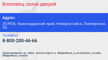 Волховец, салон дверей по адресу 353918, Краснодарский край, Новороссийск, Пионерская, 2д в дальнейшем Организация, размещена в следующих категориях: