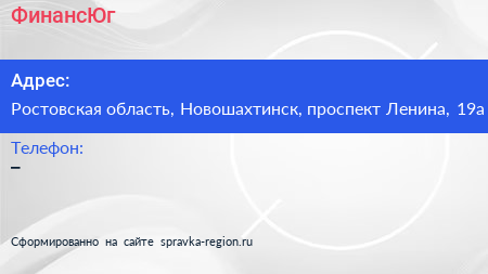 ФинансЮг по адресу Ростовская область, Новошахтинск, проспект Ленина, 19а в дальнейшем Организация, размещена в следующих категориях: