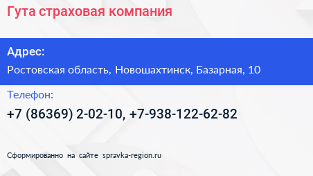 Гута, страховая компания по адресу Ростовская область, Новошахтинск, Базарная, 10 в дальнейшем Организация, размещена в следующих категориях: