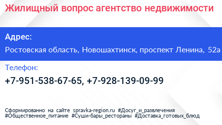 Жилищный вопрос, агентство недвижимости по адресу Ростовская область, Новошахтинск, проспект Ленина, 52а в дальнейшем Организация, размещена в следующих категориях: