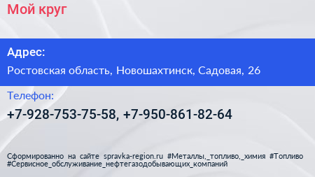 Мой круг по адресу Ростовская область, Новошахтинск, Садовая, 26 в дальнейшем Организация, размещена в следующих категориях: