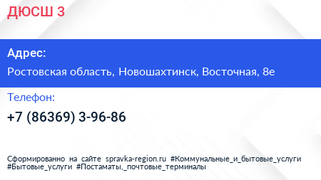 ДЮСШ №3 по адресу Ростовская область, Новошахтинск, Восточная, 8е в дальнейшем Организация, размещена в следующих категориях: