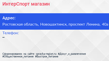 ИнтерСпорт, магазин по адресу Ростовская область, Новошахтинск, проспект Ленина, 40а в дальнейшем Организация, размещена в следующих категориях: