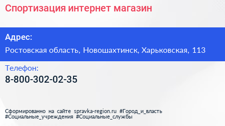 Спортизация, интернет-магазин по адресу Ростовская область, Новошахтинск, Харьковская, 113 в дальнейшем Организация, размещена в следующих категориях: