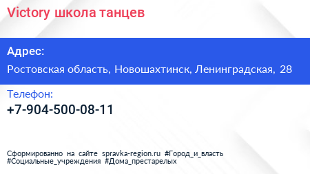 Victory, школа танцев по адресу Ростовская область, Новошахтинск, Ленинградская, 28 в дальнейшем Организация, размещена в следующих категориях: