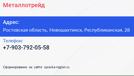 Металлотрейд по адресу Ростовская область, Новошахтинск, Республиканская, 28 в дальнейшем Организация, размещена в следующих категориях: