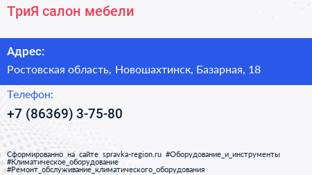 ТриЯ, салон мебели по адресу Ростовская область, Новошахтинск, Базарная, 18 в дальнейшем Организация, размещена в следующих категориях: