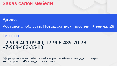 Заказ, салон мебели по адресу Ростовская область, Новошахтинск, проспект Ленина, 28 в дальнейшем Организация, размещена в следующих категориях: