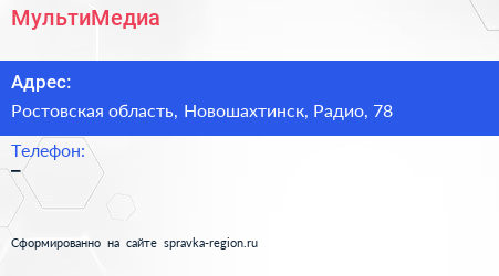МультиМедиа по адресу Ростовская область, Новошахтинск, Радио, 78 в дальнейшем Организация, размещена в следующих категориях: