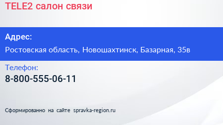 TELE2, салон связи по адресу Ростовская область, Новошахтинск, Базарная, 35в в дальнейшем Организация, размещена в следующих категориях: