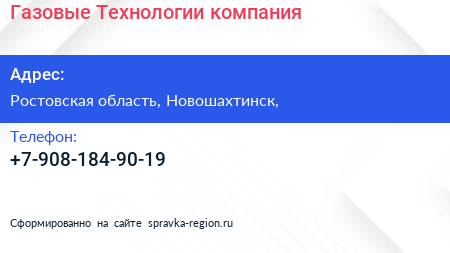 Газовые Технологии, компания по адресу Ростовская область, Новошахтинск, в дальнейшем Организация, размещена в следующих категориях: