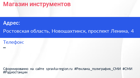 Магазин инструментов по адресу Ростовская область, Новошахтинск, проспект Ленина, 4 в дальнейшем Организация, размещена в следующих категориях: