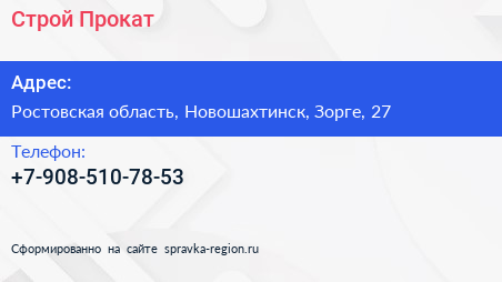 Строй-Прокат по адресу Ростовская область, Новошахтинск, Зорге, 27 в дальнейшем Организация, размещена в следующих категориях: