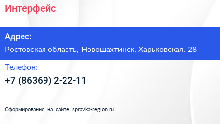 Интерфейс по адресу Ростовская область, Новошахтинск, Харьковская, 28 в дальнейшем Организация, размещена в следующих категориях: