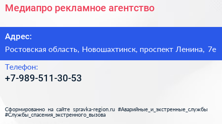 Медиапро, рекламное агентство по адресу Ростовская область, Новошахтинск, проспект Ленина, 7е в дальнейшем Организация, размещена в следующих категориях: