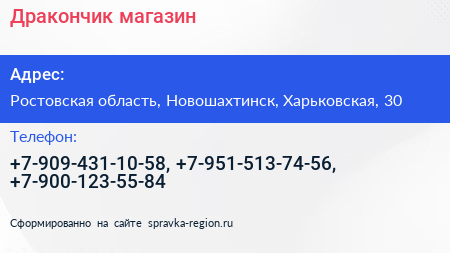 Дракончик, магазин по адресу Ростовская область, Новошахтинск, Харьковская, 30 в дальнейшем Организация, размещена в следующих категориях: