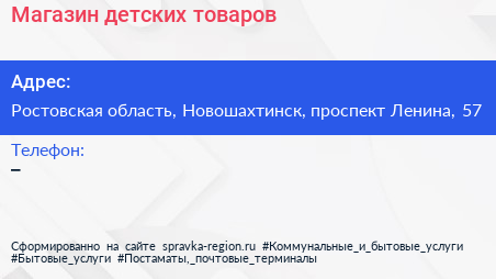 Магазин детских товаров по адресу Ростовская область, Новошахтинск, проспект Ленина, 57 в дальнейшем Организация, размещена в следующих категориях: