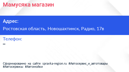 Мамусяка, магазин по адресу Ростовская область, Новошахтинск, Радио, 17в в дальнейшем Организация, размещена в следующих категориях: