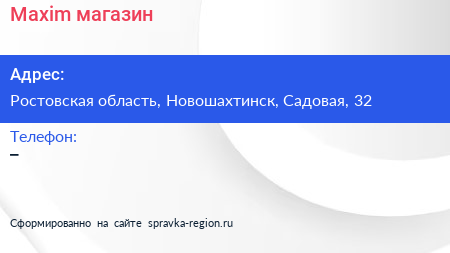 Maxim, магазин по адресу Ростовская область, Новошахтинск, Садовая, 32 в дальнейшем Организация, размещена в следующих категориях: