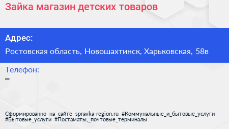 Зайка, магазин детских товаров по адресу Ростовская область, Новошахтинск, Харьковская, 58в в дальнейшем Организация, размещена в следующих категориях: