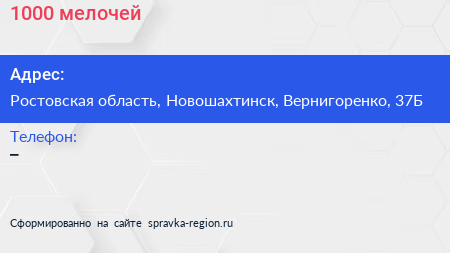 1000 мелочей по адресу Ростовская область, Новошахтинск, Вернигоренко, 37Б в дальнейшем Организация, размещена в следующих категориях: