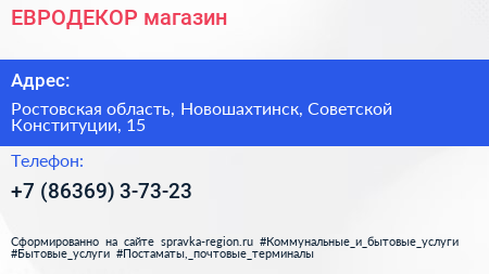 ЕВРОДЕКОР, магазин по адресу Ростовская область, Новошахтинск, Советской Конституции, 15 в дальнейшем Организация, размещена в следующих категориях: