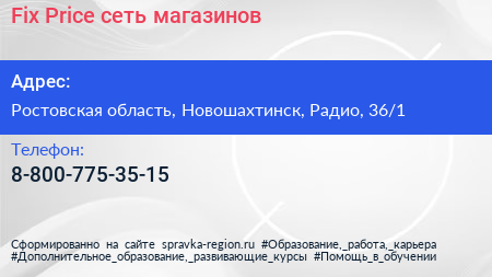 Fix Price, сеть магазинов по адресу Ростовская область, Новошахтинск, Радио, 36/1 в дальнейшем Организация, размещена в следующих категориях: