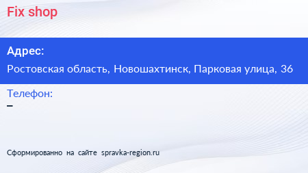 Fix shop по адресу Ростовская область, Новошахтинск, Парковая улица, 36 в дальнейшем Организация, размещена в следующих категориях: