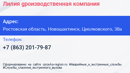 Лилия, gроизводственная компания по адресу Ростовская область, Новошахтинск, Циолковского, 38а в дальнейшем Организация, размещена в следующих категориях:
