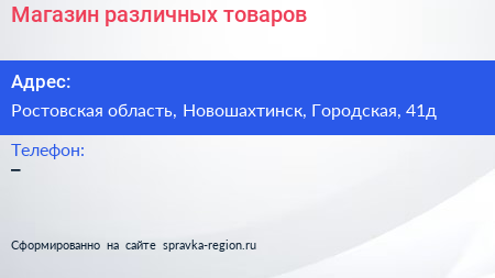 Магазин различных товаров по адресу Ростовская область, Новошахтинск, Городская, 41д в дальнейшем Организация, размещена в следующих категориях: