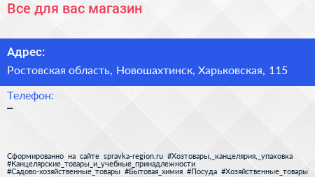 Все для вас, магазин по адресу Ростовская область, Новошахтинск, Харьковская, 115 в дальнейшем Организация, размещена в следующих категориях: