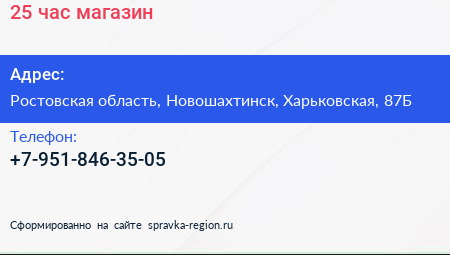 25 час, магазин по адресу Ростовская область, Новошахтинск, Харьковская, 87Б в дальнейшем Организация, размещена в следующих категориях: