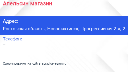 Апельсин, магазин по адресу Ростовская область, Новошахтинск, Прогрессивная 2-я, 2 в дальнейшем Организация, размещена в следующих категориях: