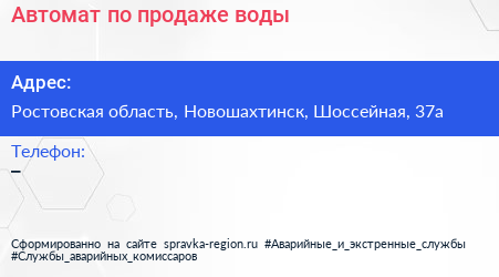 Автомат по продаже воды по адресу Ростовская область, Новошахтинск, Шоссейная, 37а в дальнейшем Организация, размещена в следующих категориях: