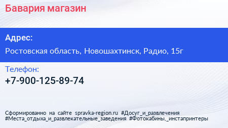 Бавария, магазин по адресу Ростовская область, Новошахтинск, Радио, 15г в дальнейшем Организация, размещена в следующих категориях: