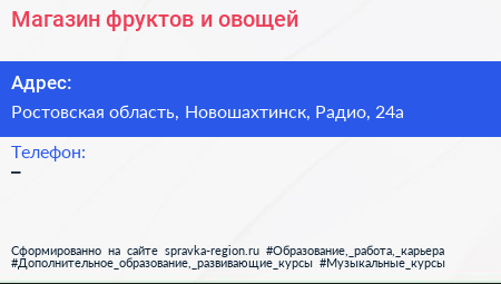 Магазин фруктов и овощей по адресу Ростовская область, Новошахтинск, Радио, 24а в дальнейшем Организация, размещена в следующих категориях:
